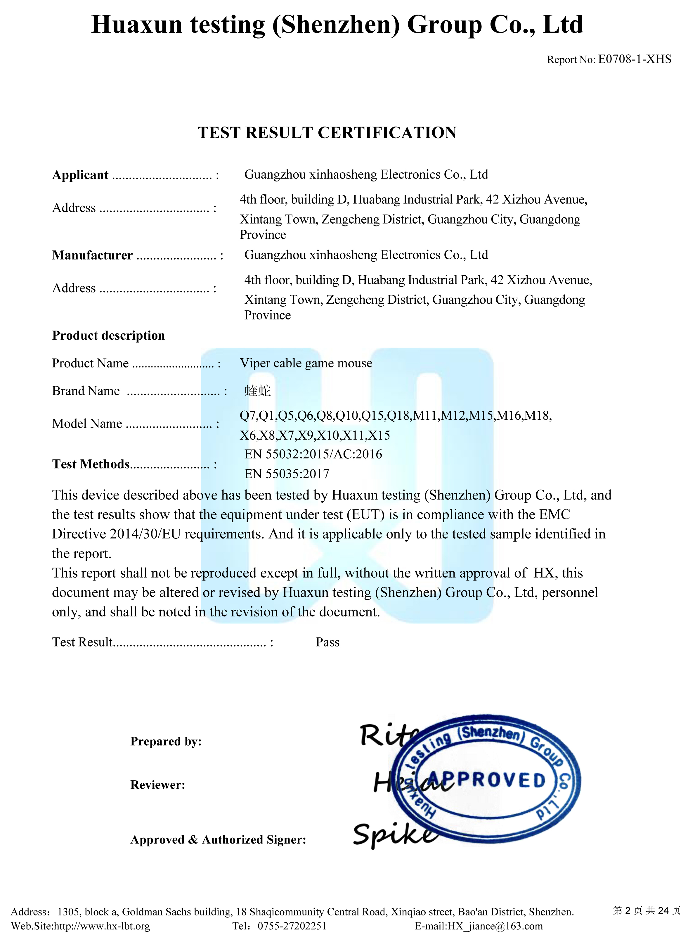 Wired mouse CE/EMC test report